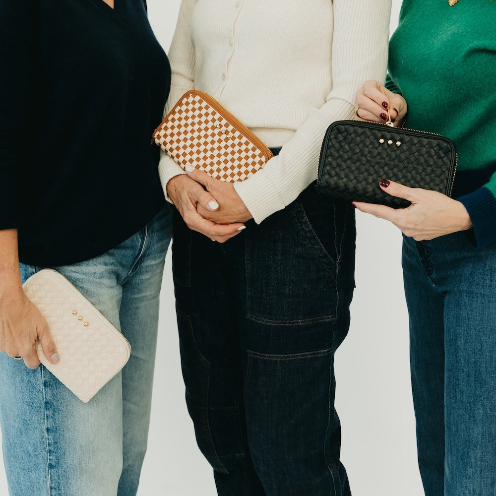 Meet your new go-everywhere essential! The Lenni Large Zip Woven Wallet combines style with serious functionality. Crafted with a beautiful woven finish, this versatile piece features a spacious interior, zipper pockets for secure storage, and dedicated card slots on each side to keep everything organized. Whether you're using it as a wallet or grabbing it as a clutch, the Lenni adapts to your lifestyle. Available in a range of colors to match your vibe, it's the perfect companion for anyone who refuses to compromise on style or practicality.